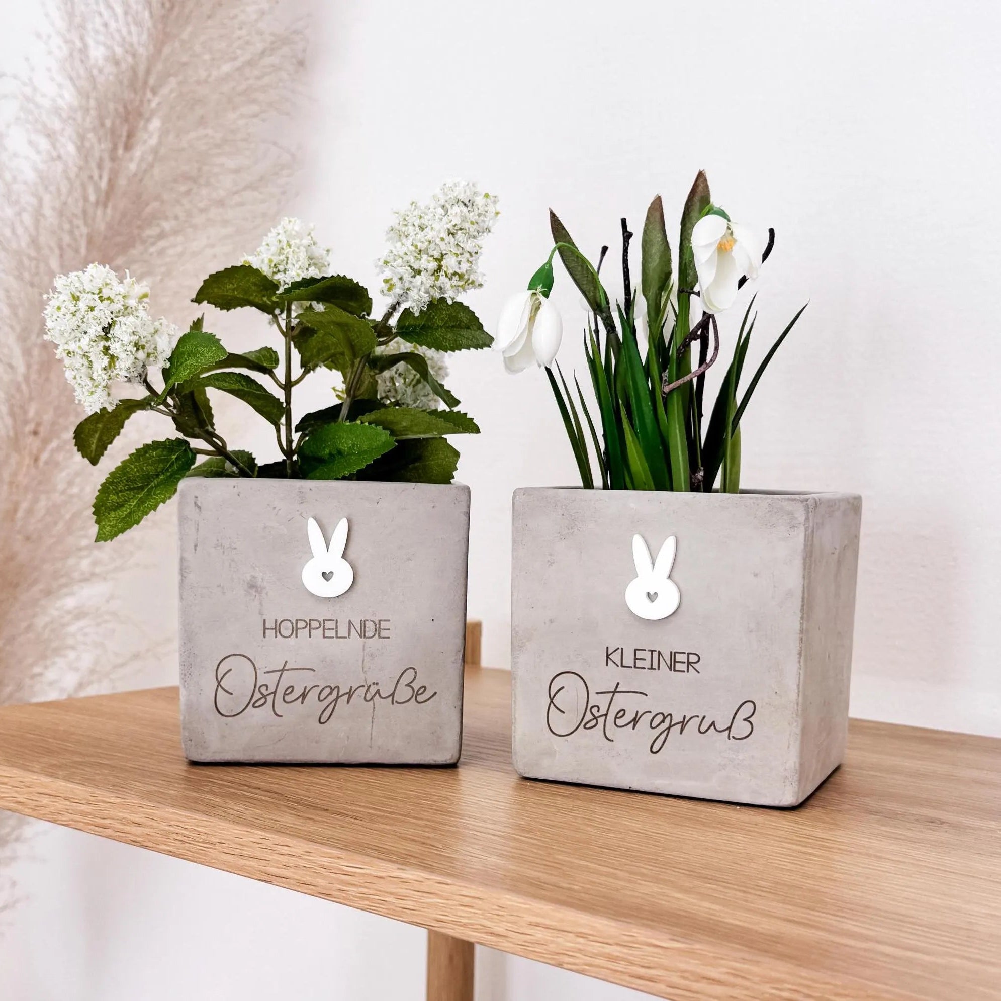 Setze eine schöne Frühlingspflanze, Osterblume oder Blume hinein oder verwende ihn als kreatives Geldgeschenk. Wir bieten zwei verschiedene Optionen der Gravur an: